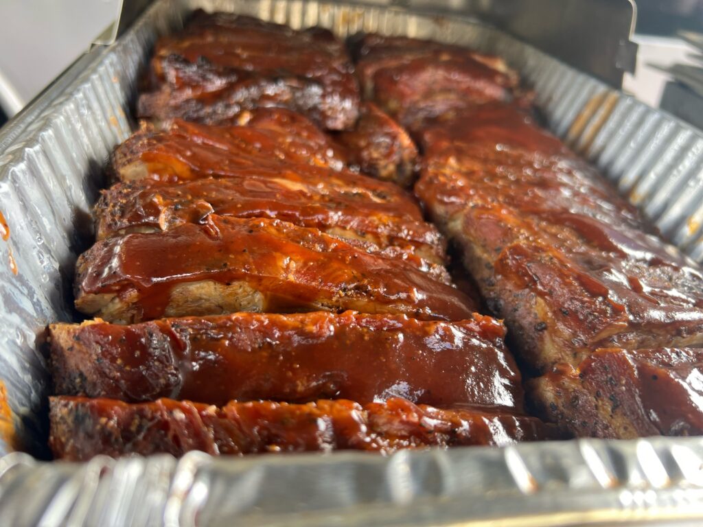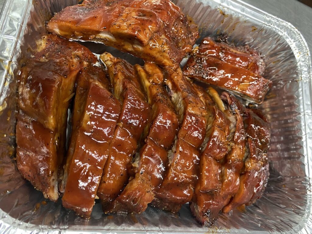 Our ribs are rubbed with a signature sweet-and-tangy blend, slow-cooked to perfection, and finished with a generous glaze of our rich, sweet BBQ sauce for a tender, flavorful bite every time.