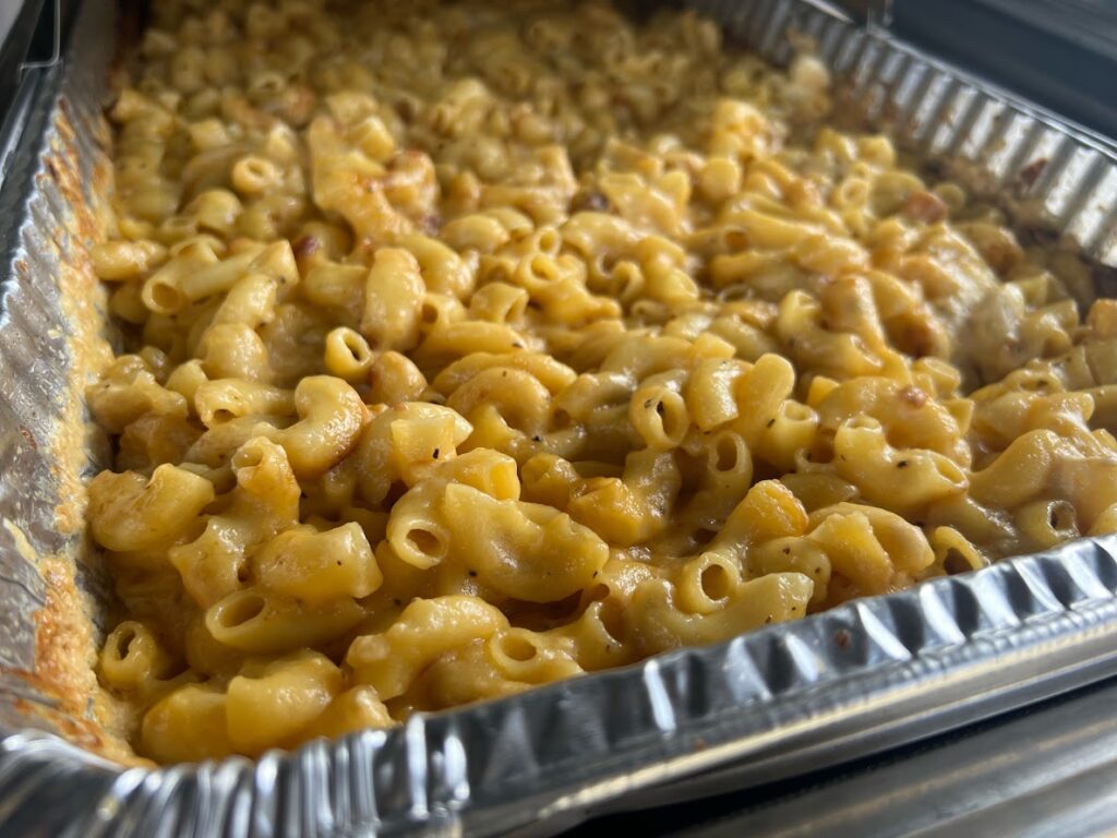 Rich, creamy, and baked to golden perfection. Our Baked Mac n’ Cheese is made with tender elbow macaroni folded into a velvety blend of real cheeses, then oven-baked until bubbly with a perfectly crisp, golden top. Every bite is smooth, cheesy comfort with just the right touch of savory goodness. The ultimate homestyle side that pairs perfectly with smoky BBQ favorites.