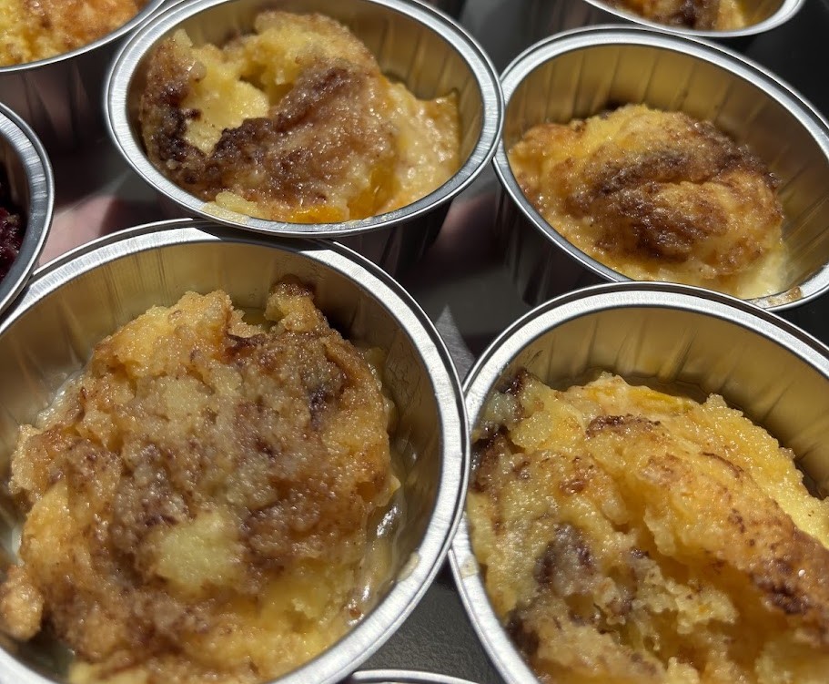 Enjoy the comforting flavors of our classic peach cobbler-sweet, tender peaches baked to perfection with a buttery, golden crust. The perfect dessert to end your BBQ on a satisfying and memorable note.
